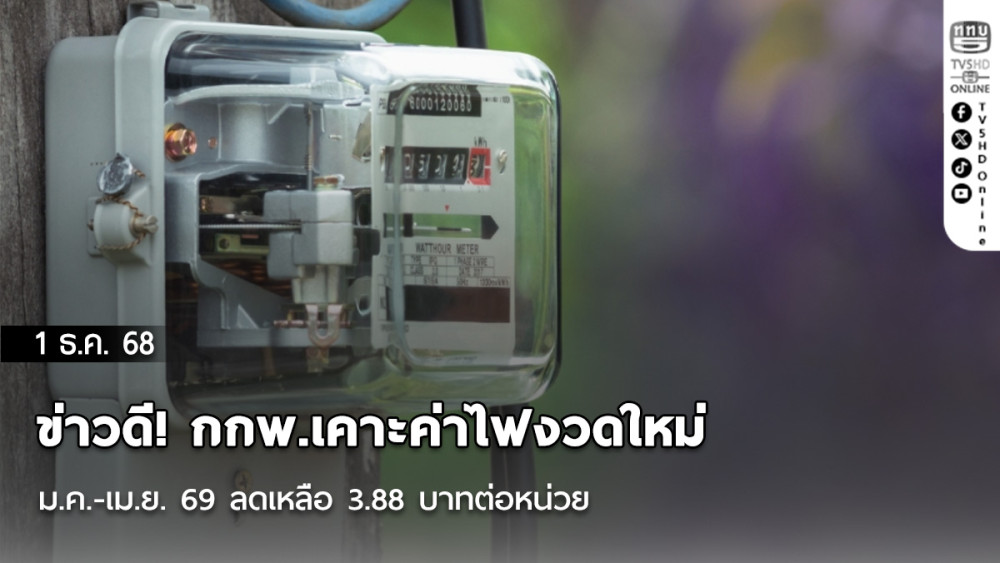 ข่าวดี! กกพ.เคาะค่าไฟงวดใหม่ ม.ค.-เม.ย. 69 ลดเหลือ 3.88 บาทต่อหน่วย