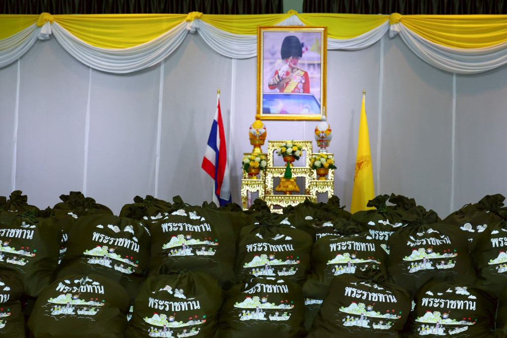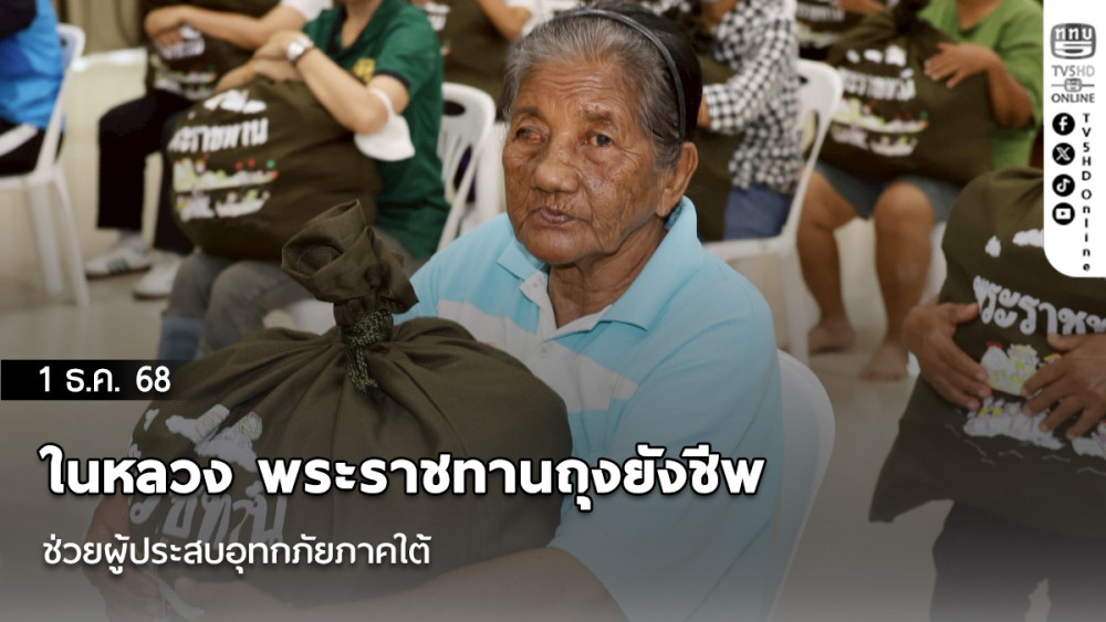 พระบาทสมเด็จพระเจ้าอยู่หัว ทรงพระกรุณาโปรดเกล้าฯ พระราชทานถุงยังชีพ ช่วยผู้ประสบอุทกภัยภาคใต้ ณ ค่ายเสนาณรงค์ เพื่อบรรเทาความเดือดร้อนและเป็นกําลังใจแก่ประชาชน
