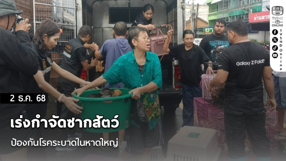 กรมปศุสัตว์ส่งหน่วยเคลื่อนที่ลงพื้นที่ 10 จังหวัดใต้ ดูแลสุขภาพสัตว์ แจกหญ้าพระราชทาน–อาหารสัตว์ และเร่งจัดการซากสัตว์ในหาดใหญ่เพื่อคุมโรคระบาด