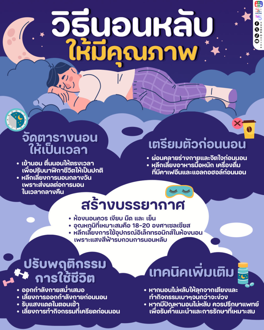 เข้านอนและตื่นให้ตรงเวลาทุกวัน แม้แต่วันหยุด เพื่อปรับนาฬิกาชีวิตให้เป็นปกติ