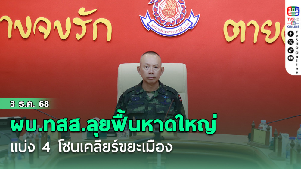 ผบ.ทสส. ลงพื้นที่ค่ายเสนาณรงค์ ผนึกกําลังทุกภาคส่วนเร่งฟื้นฟูเมืองหาดใหญ่เต็มอัตรา สั่งวางแผนแบ่ง 4 โซนจัดการขยะ ระดมแพทย์เดินเท้าดูแลกาย-ใจ พร้อมยืนยันระบบสาธารณูปโภคเริ่มกลับสู่ภาวะปกติ