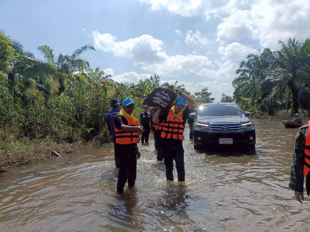 มทบ.41 อัญเชิญถุงยังชีพพระราชทาน ลุยพื้นที่น้ําท่วมชะอวด มอบสิ่งของบรรเทาทุกข์ สร้างขวัญกําลังใจแก่ผู้สูงอายุและผู้ประสบภัย