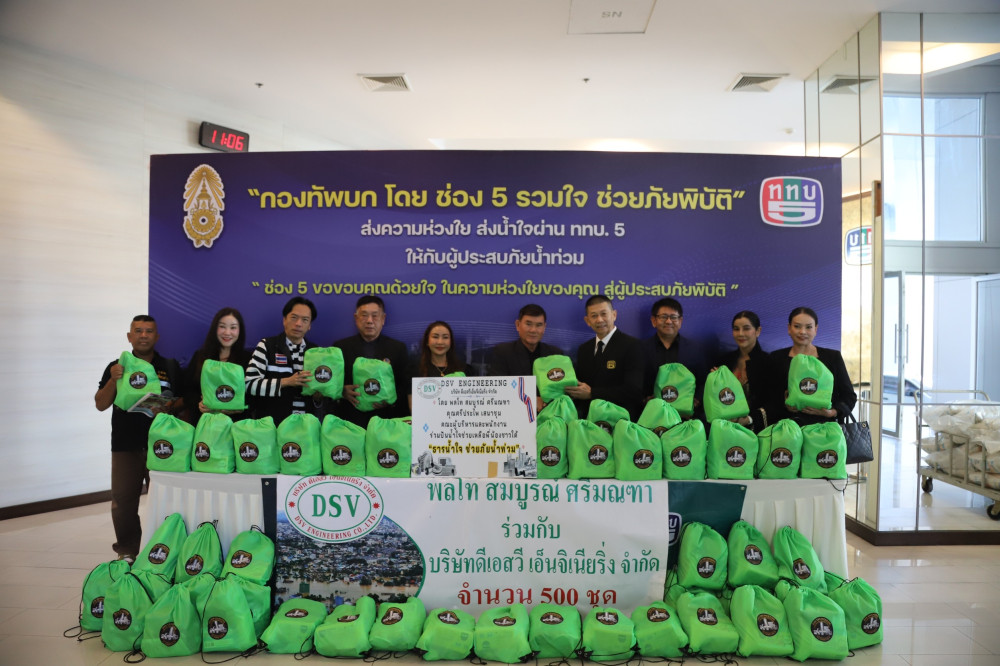 -คณะของ พลโทสมบูรณ์ ศรีมณฑา และ บริษัท ดีเอสวี เอ็นจิเนียริ่ง จํากัด: มอบ ถุงยังชีพจํานวน 500 ถุง ซึ่งบรรจุสิ่งของอุปโภคบริโภคและของใช้จําเป็น เพื่อใช้ในการบรรเทาความเดือดร้อนเร่งด่วน