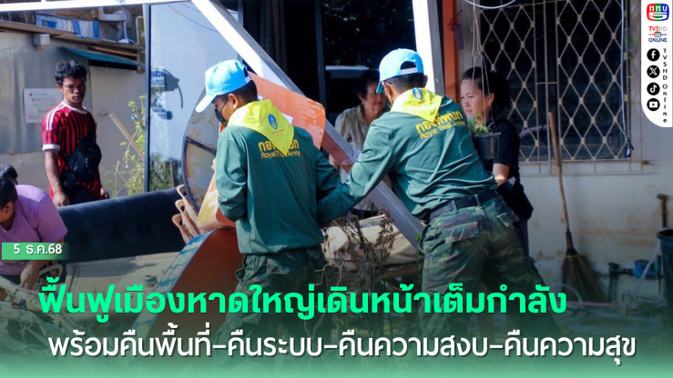 โฆษกกองทัพภาคที่ 4 รายงานภารกิจ “4 คืน” ฟื้นฟูเมืองหาดใหญ่เดินหน้าเต็มกําลัง พร้อมคืนพื้นที่–คืนระบบ–คืนความสงบ–คืนความสุข หลังน้ําลดและสถานการณ์เริ่มคลี่คลาย