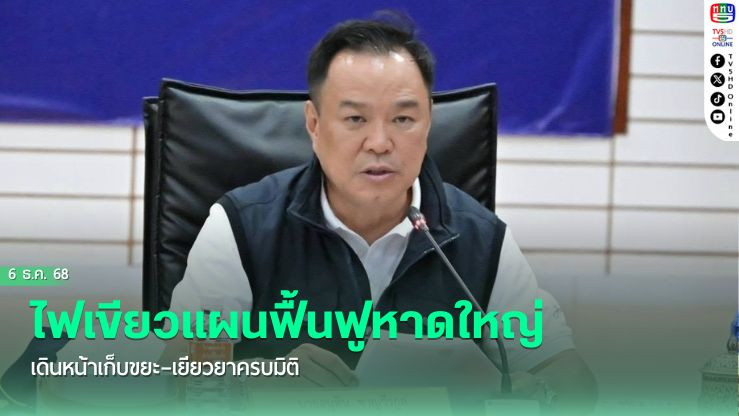 วันที่ 6 ธ.ค.68 - นายอนุทิน ชาญวีรกูล นายกรัฐมนตรีและรัฐมนตรีว่าการกระทรวงมหาดไทย เป็นประธานการประชุมกองบัญชาการป้องกันและบรรเทาสาธารณภัยแห่งชาติ (บกปภ.ช.) ณ ศูนย์ป้องกันและบรรเทาสาธารณภัย เขต 12 สงขลา อําเภอหาดใหญ่ เพื่อติดตามสถานการณ์น้ําท่วมภาคใต้ พร้อมกําหนดแนวทางฟื้นฟูเมืองหาดใหญ่และพื้นที่โดยรอบอย่างเร่งด่วน