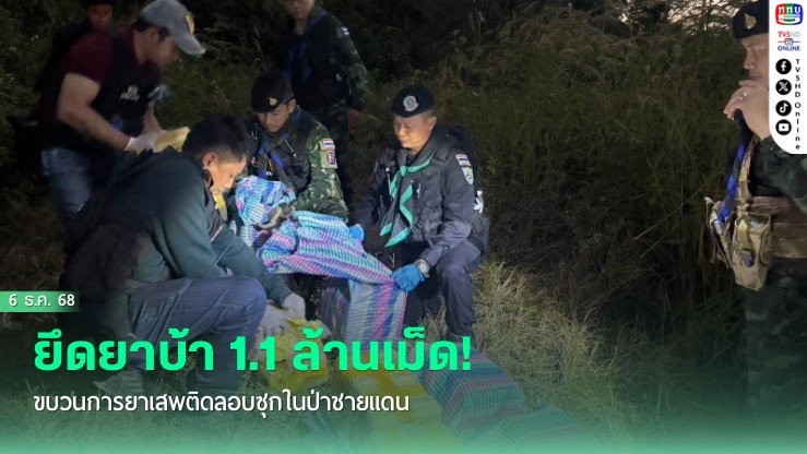 วันที่ 6 ธ.ค.68 - กองกําลังผาเมืองสนธิกําลังทหารพรานและตํารวจตระเวนชายแดน เปิดปฏิบัติการสกัดกั้นขบวนการลักลอบลําเลียงยาเสพติดในพื้นที่ชายแดน อําเภอเวียงแก่น จังหวัดเชียงราย จนสามารถตรวจยึดยาบ้า 1,100,000 เม็ด ซุกซ่อนอยู่ในพงหญ้าบริเวณภูเขาใกล้หมู่บ้านร่มฟ้าทอง เมื่อช่วงเย็นของวันที่ 5 ธันวาคมที่ผ่านมา