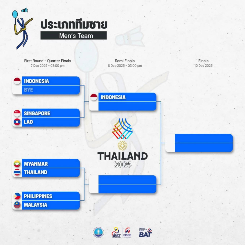 ผลการจับสลากแบดมินตันประเภททีม ในกีฬาซีเกมส์ ครั้งที่ 33 ที่ประทศไทยเป็นเจ้าภาพ จัดการแข่งขันระหว่างวันที่ 9–20 ธ.ค. 2568 ออกมาเป็นที่เรียบร้อย