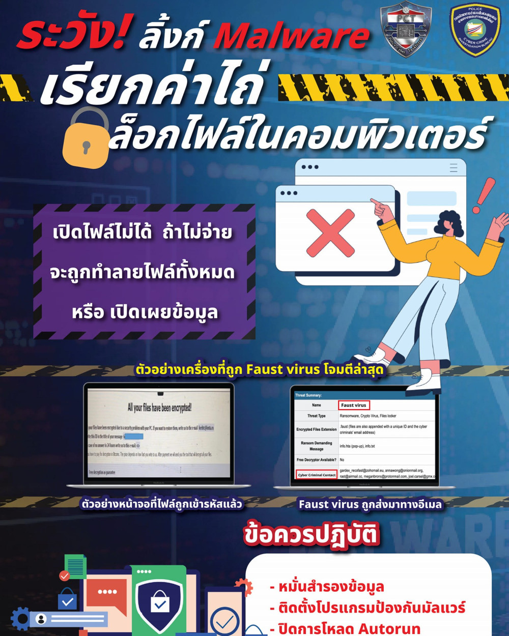 ตํารวจไซเบอร์ฝากเตือนภัย ระวัง! ลิ้งก์ Malware เรียกค่าไถ่ ล็อกไฟล์ในคอมพิวเตอร์