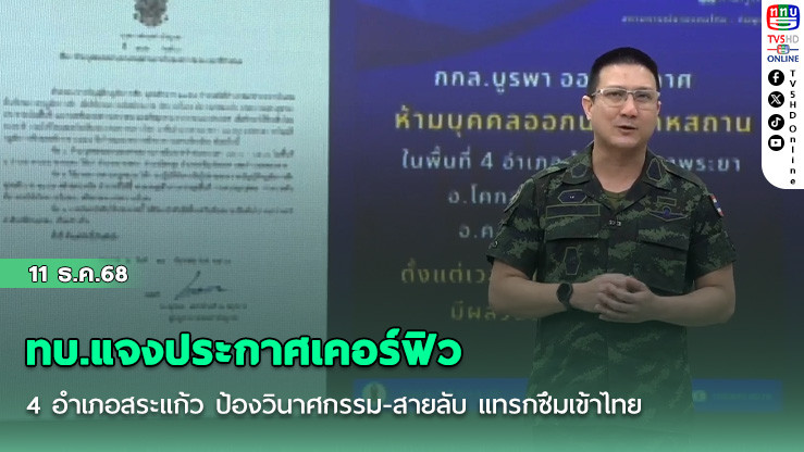 ทบ.แจงประกาศเคอร์ฟิว 4 อําเภอสระแก้ว ป้องวินาศกรรม-สายลับ แทรกซึมเข้าไทย เผยมีขั้นตอนคัดกรองคนไทยติดค้างกัมพูชา