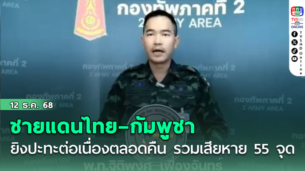 ศูนย์ปฏิบัติการกองทัพภาคที่ 2 สรุปสถานการณ์ตามแนวชายแดนไทย-กัมพูชา ประจําวันที่ 12 ธันวาคม 2568 (เวลา 09.00 น.)
