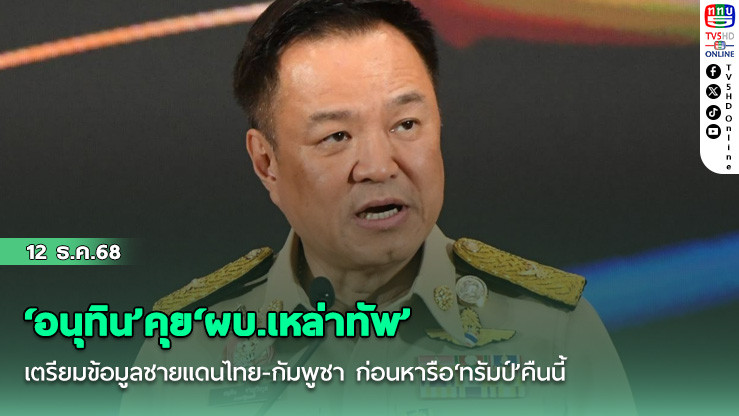 เมื่อเวลา 13.00 น. วันที่ 12 ธันวาคม 2568 ผู้สื่อข่าวรายงานว่า นายอนุทิน ชาญวีรกูล นายกรัฐมนตรีและรมว.มหาดไทย ได้เข้าหารือกับ พล.อ.ณัฐพล นาคพาณิชย์ รมว.กลาโหม และผบ.เหล่าทัพ ที่กองบัญชาการกองทัพไทย เพื่อเตรียมข้อมูลก่อนการหารือกับนายโดนัลด์ ทรัมป์ ประธานาธิบดีสหรัฐอเมริกา เกี่ยวกับสถานการณ์ชายแดนไทย-กัมพูชา จากนั้นเวลา 14.30 น. ที่สถาบันเพื่อการยุติธรรมแห่งประเทศไทย (องค์การมหาชน) ถนนแจ้งวัฒนะ เขตหลักสี่ กรุงเทพฯ นายกฯให้สัมภาษณ์ ถึงการหารือร่วมกับผู้บัญชาการเหล่าทัพ ว่า เป็นการรับฟังความคืบหน้าการดําเนินการและได้ยืนยันว่าแม้จะยุบสภาฯแต่รัฐบาลยังทําหน้าที่บริหารราชการแผ่นดินต่อไป ยังให้การสนับสนุนเหล่าทัพในการปกป้องอธิปไตยและดูแลประชาชนเหมือนเดิม เพื่อให้เกิดความมั่นใจว่าทุกอย่างยังมีประสิทธิภาพสูงสุด