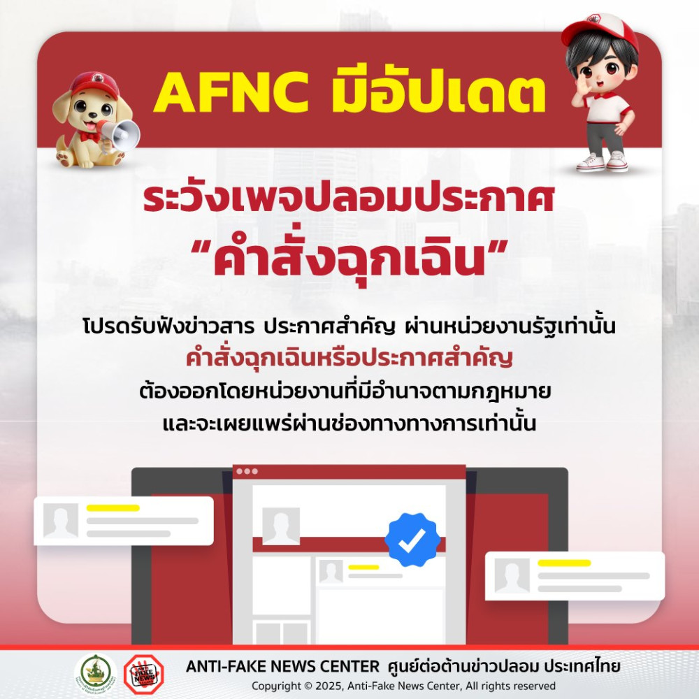 #ศูนย์ต่อต้านข่าวปลอม #AntiFakeNewsCenter #AFNCThailand #เพจปลอม #คําสั่งฉุกเฉิน