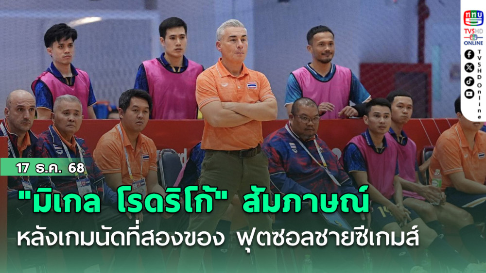มิเกล โรดริโก้ หัวหน้าผู้ฝึกสอน ฟุตซอลชายทีมชาติไทย ให้สัมภาษณ์หลังการแข่งขันฟุตซอลชายในมหกรรมซีเกมส์ ครั้งที่ 33 นัดที่สอง